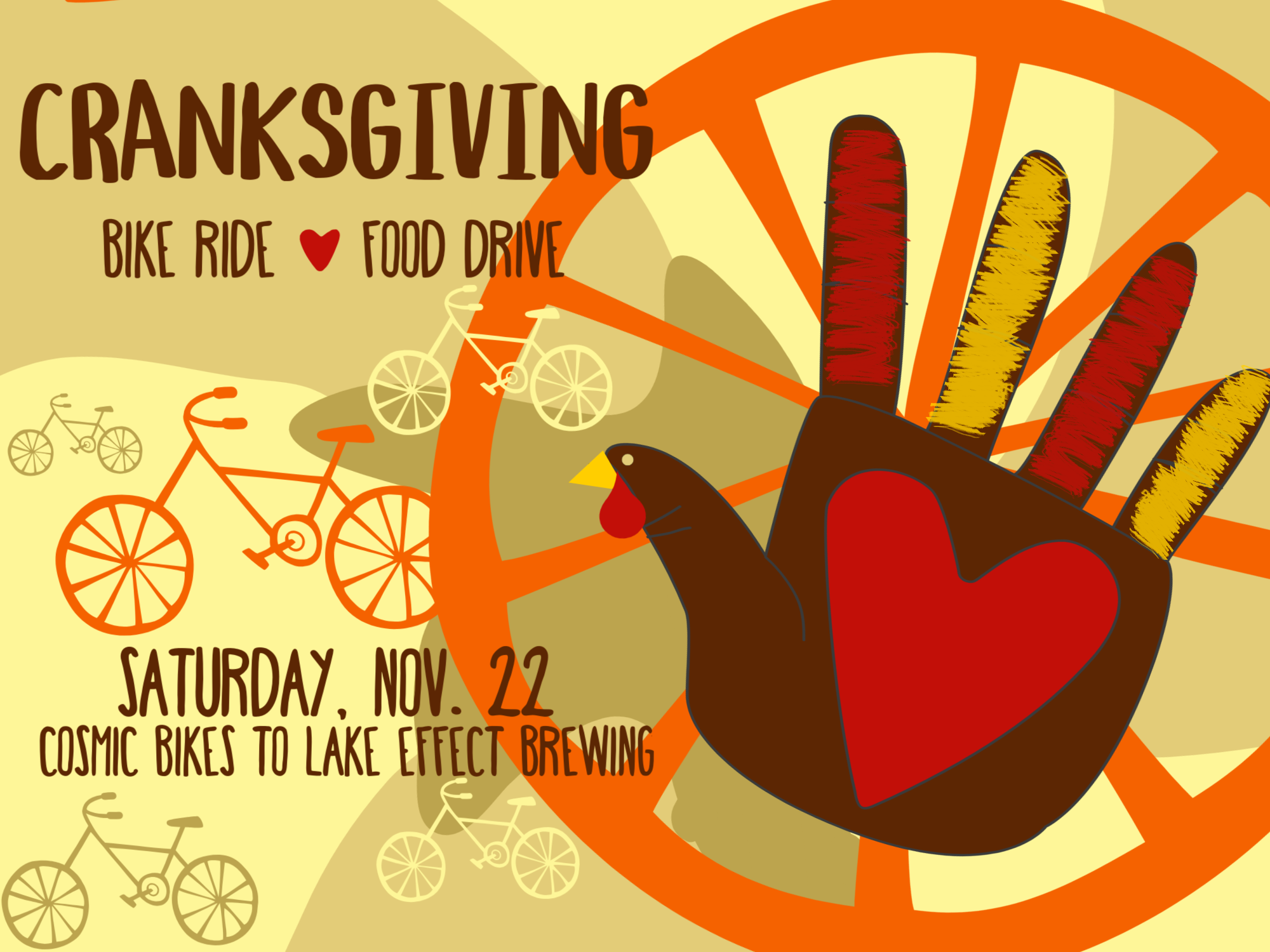 Cranksgiving Chicago Chapter is ready to roll again in 2025! Every year, throughout the country, shops and individuals organize Cranksgiving events to help provide thousands of those in need with a food during the holiday season. Our annual Chicago food drive/scavenger hunt by bike gets rolling on Saturday, Novemeber 24 at noon from Cosmic Bikes in Jefferson Park. Over the last three yeasr Cranksters here on the NW side contributed hundreds of pounds of holiday food, pantry staples and personal care items to folks in need through New Hope Pantry. The event will begin with registration and check-in at 12 noon at Cosmic Bikes (with some energizing beverages and snacks on hand). The event is free, but you will need money to purchase food and other items to be donated. All riders will receive a list of items to buy from specific grocery stores around the NW Side, all accessible via local roads and trails. Once you've acquired everything you're able to on the list, haul it back for the closing party at Lake Effect Brewing at 3073 N. Milwaukee. Cosmic Bikes people will be at the brewery from 2:30pm to greet you! When you arrive with your bounty, we'll count, weigh and sort your catch, buy you a drink and celebrate, and then we'll award prizes for (1) heaviest haul, (2) most items delivered, (3) highest mileage, (4) cleverest costume (prize categories subject to revision😃). We will deliver the mountain of your donations to New Hope Community Food Pantry for distribution to needy families and individuals through their food pantry and aid programs. Questions? See below, or contact COSMIC BIKES with any questions about Cranksgiving Chicago: 773-930-4076 (voice or text) or justyna@cosmicbikes.com Registration is encouraged but not required! Day of registration accepted!Chicago, IL