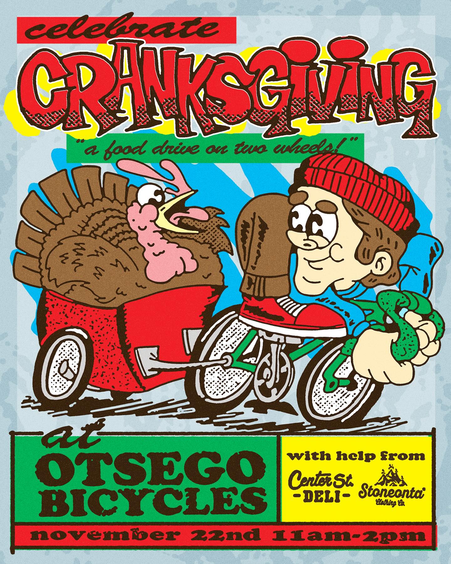 Come join us for the first ever Cranksgiving Oneonta, a food drive on two wheels, hosted by Otsego Bicycles on Saturday, November 22nd from 11am to 2pm. Part bike ride, part scavenger hunt, Cranksgiving is a fun way to bike around town while gathering donations to support Your Safe Haven food pantry. All you need is a bicycle, a lock, and a bag. The event is free, but you’ll need $10-$20 to purchase food.